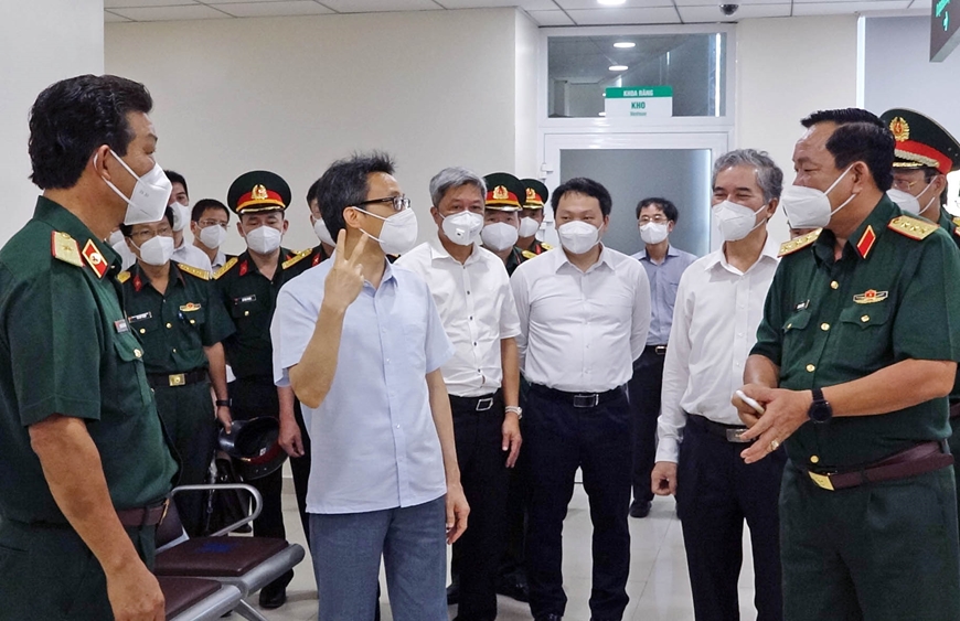 Đối với Bệnh viện Quân y 175, Phó thủ tướng Vũ Đức Đam biểu dương bệnh viện đang làm tốt công tác PCD, điều trị bệnh nhân Covid-19 ở các lớp điều trị cuối, thì càng phải có mục tiêu rõ ràng, cụ thể hơn trong điều trị. Bệnh viện, các cơ quan liên quan, địa phương cần tập trung nguồn lực để ưu tiên cho nhiệm vụ điều trị bệnh nhân Covid-19, phải “chạy đua bằng giờ”, điều động ngay trang thiết bị tăng cường cho bệnh viện.