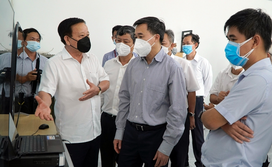 | Các đại biểu tham quan Khu Điều trị bệnh nhân Covid-19 Thới Hòa. |
