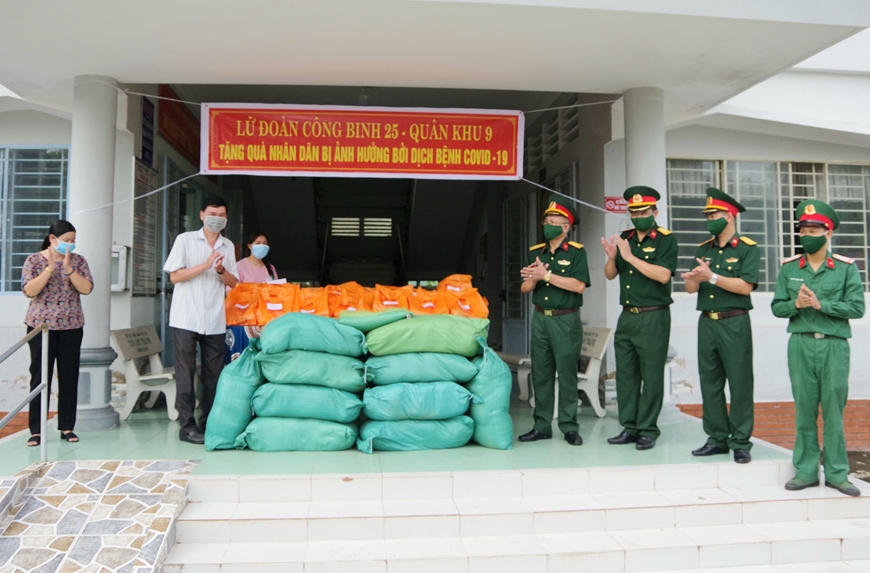 | Lữ đoàn Công binh 25 tặng quà cho nhân dân do ảnh hưởng của dịch Covid-19. |