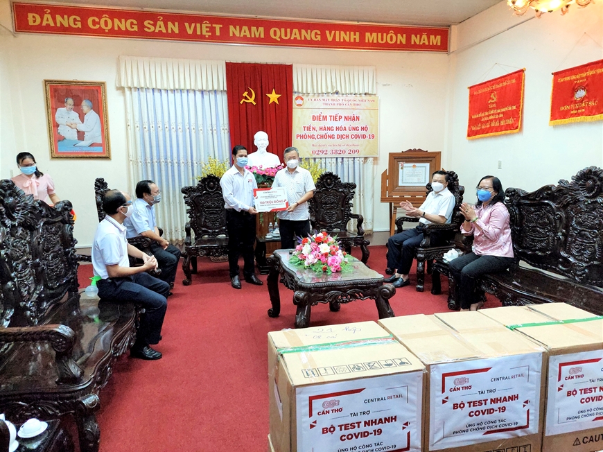 * Ngày 14-8, Tập đoàn Central Retail đã thông qua Ủy ban MTTQ Việt Nam TP Cần thơ tiến hành trao tặng 6.000 bộ xét nghiệm nhanh Covid-19, trị giá 700 triệu đồng giúp địa phương phòng, chống dịch.