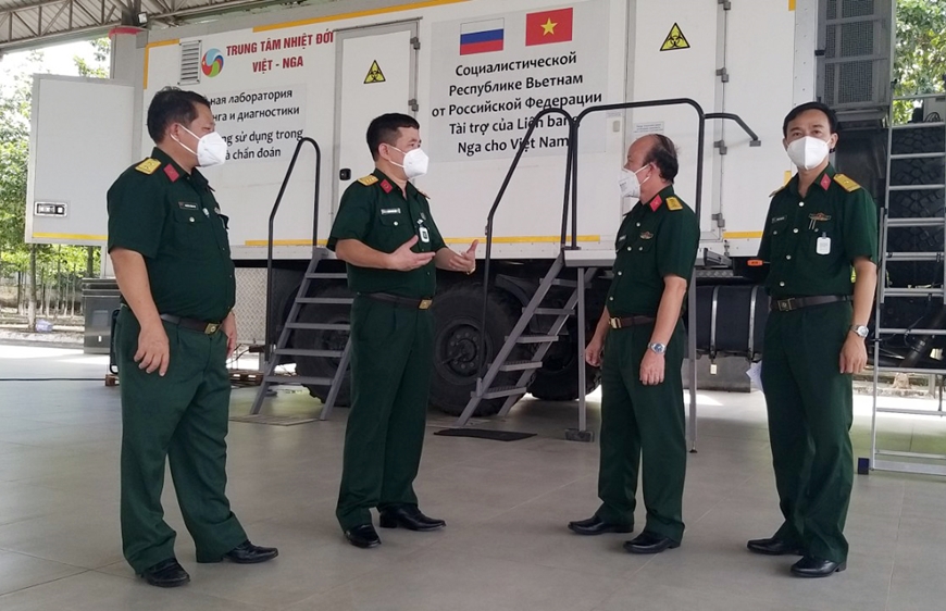 Lực lượng y, bác sĩ cùng xe labo xét nghiệm di động của Trung tâm Nhiệt đới Việt – Nga được bố trí tại Thị xã Tân Uyên và y, bác sĩ Viện Y học Dự phòng Quân đội cùng xe xét nghiệm được bố trí tại khu vực Trường Quân sự tỉnh trước đây. Các đơn vị đang đẩy nhanh tiến độ xét nghiệm, với quyết tâm chung tay, góp sức cùng chính quyền địa phương có kết quả xét nghiệm cần thiết theo yêu cầu, để công tác phòng, chống dịch Covid-19 hiệu quả.