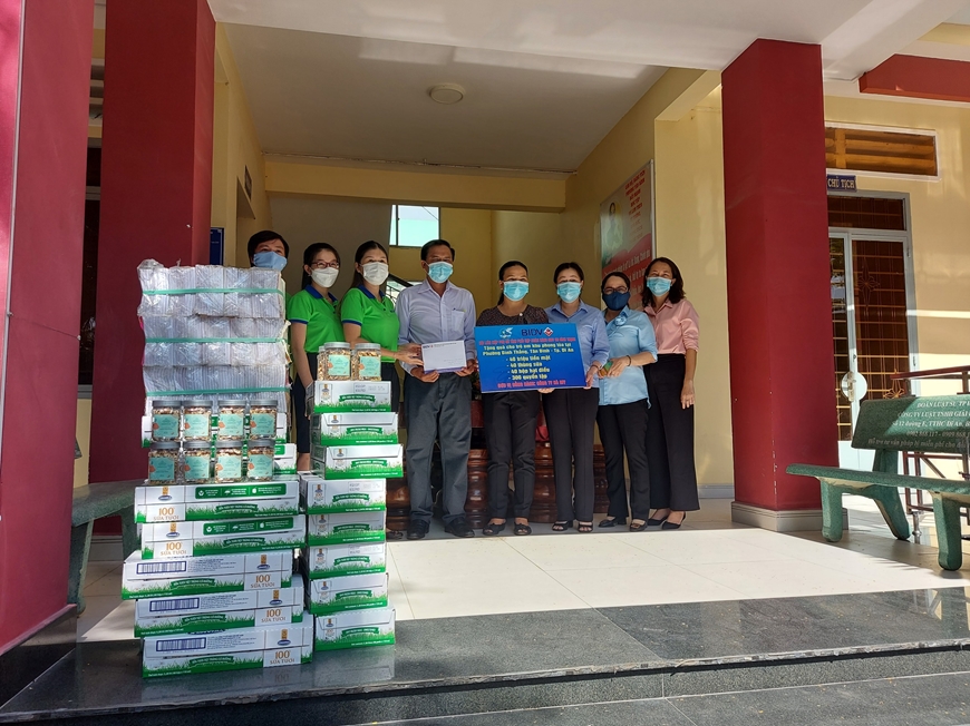 | Hội Liên hiệp Phụ nữ Việt Nam tỉnh Bình Dương phối hợp trao quà tặng khu cách ly. |