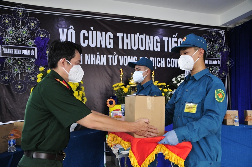 | LLVT TP Hồ Chí Minh đảm nhiệm đưa tro cốt người tử vong do Covid-19 về đến gia đình. |