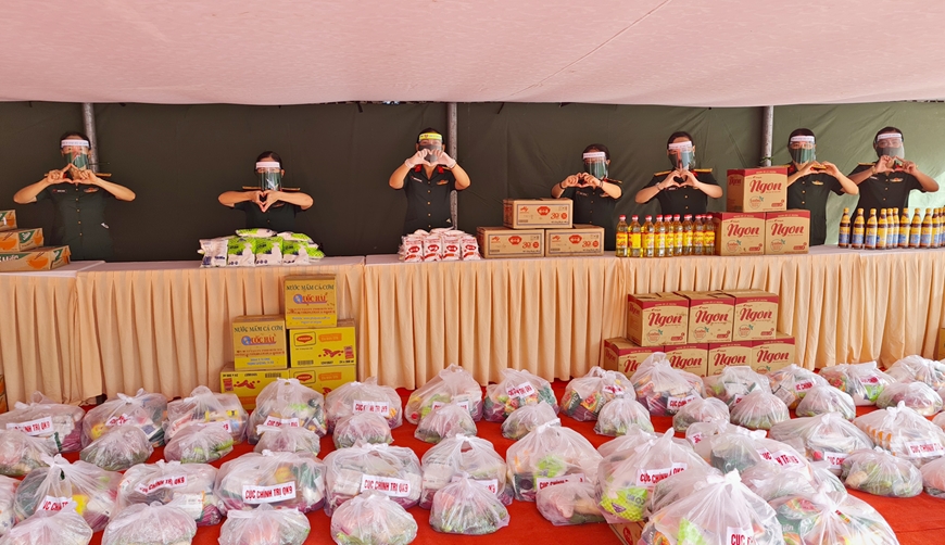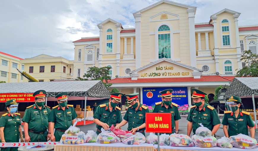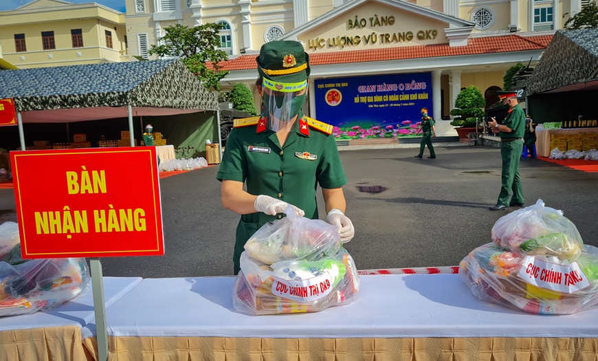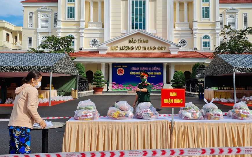 | Cục Chính trị Quân khu 9 đã chuẩn bị 600 phần hàng tại gian hàng 0 đồng, sẵn sàng phục vụ hộ nghèo đến ngày 30-7.