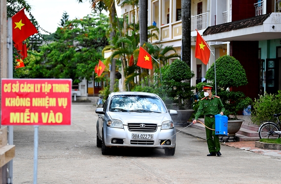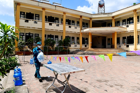 | Lực lượng dân quân phục vụ người dân cách ly tại các điểm cách ly tập trung. |