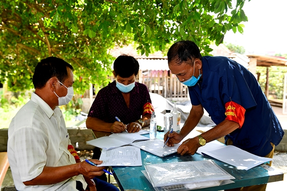 | Tổ Covid cộng đồng thôn Bản Mùi Phú tiến hành họp, truy vết và phân loại các đối tượng trong địa bàn thôn, kết hợp với nhân dân đi từng ngõ gõ từng nhà bảo đảm không để sót đối tượng có nguy cơ lây nhiễm. |
