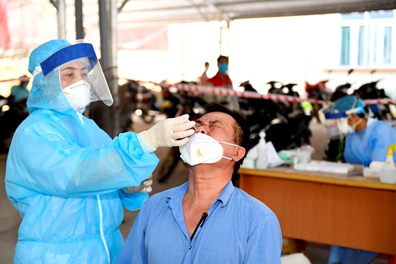 | Thực hiện giãn cách, không tập trung đông người tại các điểm lấy mẫu xét nghiệm nhanh. |