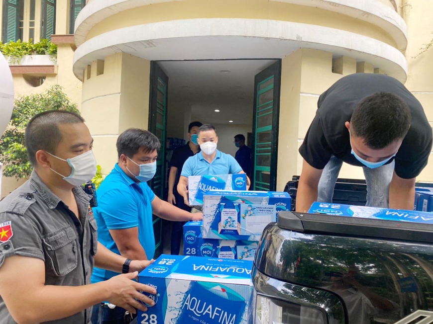 | Các thành viên của Đội phản ứng nhanh bốc dỡ hàng hỗ trợ tại Thành đoàn Hà Nội. |