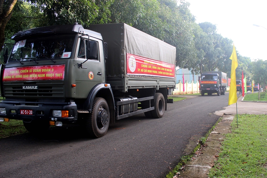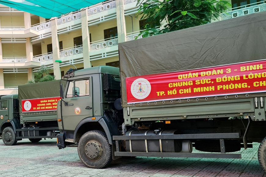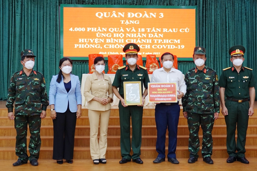 Nhu yếu phẩm là 20 tấn hàng hóa gồm gạo, lương khô, mì tôm, sữa, thịt hộp, dầu ăn, bọt ngọt được đóng thành 4.000 suất quà, tổng trị giá số tiền hơn 1,2 tỷ đồng và 18 tấn sản phẩm tăng gia của đơn vị (chuối xanh, đu đủ, bí xanh, bí đỏ, cà tím) của cán bộ, chiến sĩ Quân đoàn 3 chuyển đến các hộ dân khó khăn trên địa bàn huyện Bình Chánh.