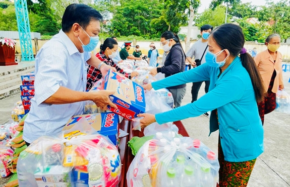 Ông Chu Văn Chính, 63 tuổi, ở ấp Phước Trung, xã Tam Phước, chia sẻ: “Dịch bệnh kéo dài, gia đình tôi ngày càng túng thiếu. Nay được các chú bộ đội quan tâm chia sẻ, tặng quà hỗ trợ trong lúc khó khăn, chúng tôi rất cảm ơn nghĩa tình của các chú”.