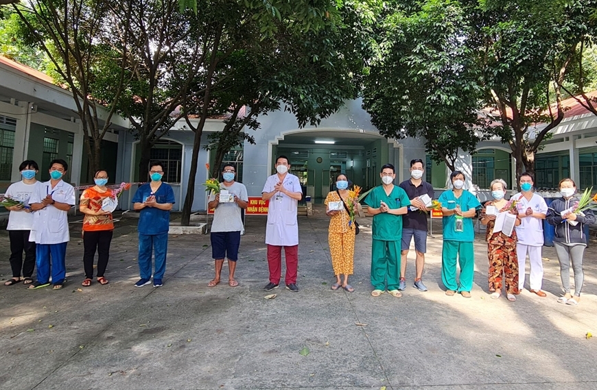 | Bệnh nhân xuất viện tại Bệnh viện dã chiến truyền nhiễm số 5B. |