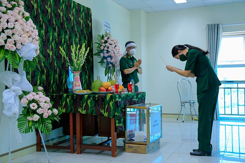 Bàn thờ vọng được lập vội, đơn sơ nhưng ấm áp tình đồng chí, đồng đội. Hình ảnh ấy không chỉ nói lên sự hy sinh, mất mát vô cùng to lớn của những cán bộ, chiến sĩ Biên phòng nơi tuyến đầu chống dịch, gác lại nỗi đau riêng vì mục tiêu chung, mà đó còn thể hiện nghĩa cử cao đẹp, tinh thần vì đồng chí, đồng đội của những người lính mang quân hàm xanh.