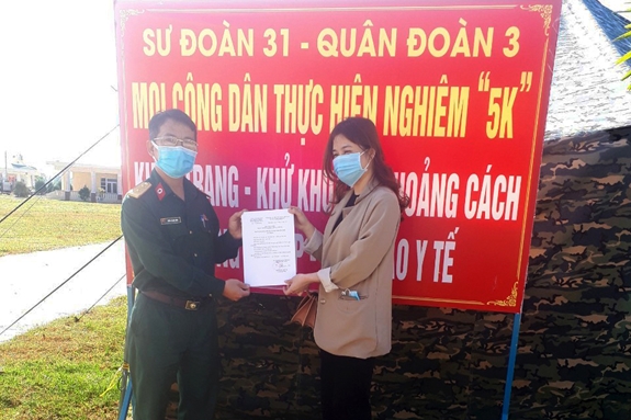 | Cán bộ Sư đoàn 31 trao giấy chứng nhận cho công dân hoàn thành thời gian cách ly |