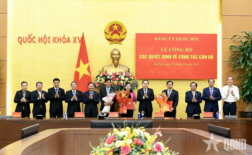 Chiều 28-10, tại Nhà Quốc hội, Ủy viên Bộ Chính trị, Bí thư Đảng ủy Quốc hội, Chủ tịch Quốc hội Trần Thanh Mẫn chủ trì Lễ công bố các quyết định về công tác cán bộ của Đảng ủy Quốc hội.