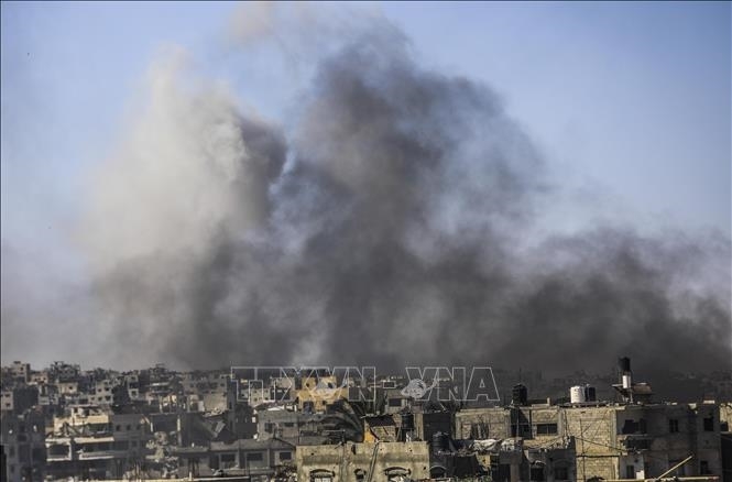 | Khói bốc lên sau cuộc không kích của Israel xuống Dải Gaza. Ảnh minh họa: THX/TTXVN |