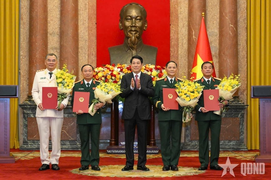 Chiều 1-8, tại Phủ Chủ tịch, Chủ tịch nước Lương Cường, Ủy viên Bộ Chính trị, Chủ tịch Hội đồng Quốc phòng và An ninh, Thống lĩnh Lực lượng vũ trang nhân dân đã chủ trì Lễ công bố, trao Quyết định thăng quân hàm cấp Thượng tướng đối với các đồng chí sĩ quan Quân đội nhân dân; thăng cấp bậc hàm Thượng tướng đối với sĩ quan Công an nhân dân.