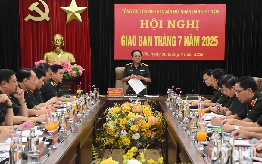 Chiều 30-7, Đại tướng Trịnh Văn Quyết, Bí thư Trung ương Đảng, Ủy viên Thường vụ Quân ủy Trung ương, Chủ nhiệm Tổng cục Chính trị Quân đội nhân dân Việt Nam chủ trì Hội nghị giao ban đánh giá kết quả thực hiện nhiệm vụ công tác Đảng, công tác chính trị tháng 7, triển khai nhiệm vụ trọng tâm công tác tháng 8-2025.