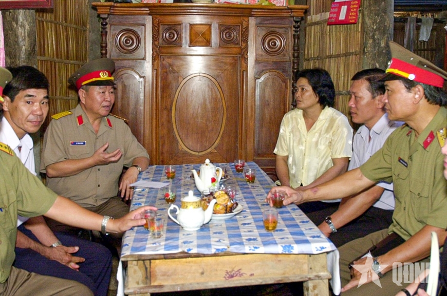 | Thượng tướng Lê Văn Dũng thăm, tặng quà và động viên gia đình anh Nguyễn Văn Thanh là con liệt sĩ ở tỉnh Bến Tre (nay là tỉnh Vĩnh Long), năm 2006. |