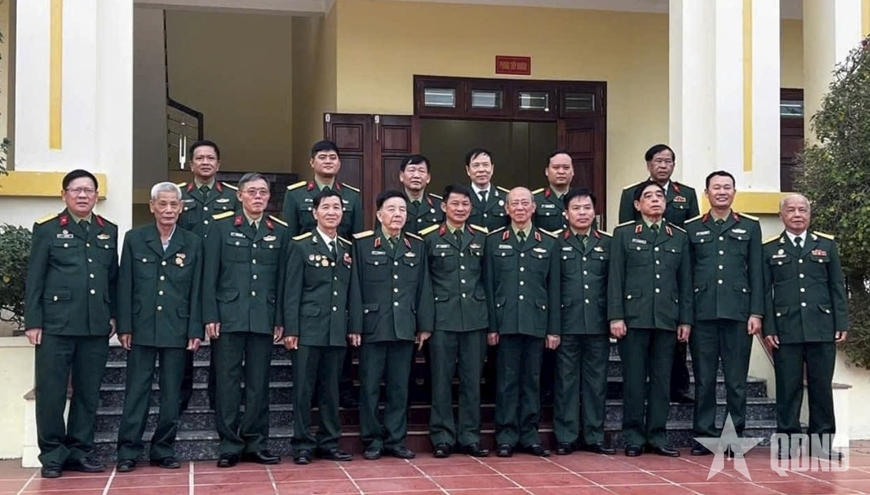 | Thiếu tướng Nguyễn Văn Nuôi (hàng đầu, thứ năm từ phải sang) cùng các đồng đội tại Sở chỉ huy Trung đoàn 101 tháng 12-2024. |