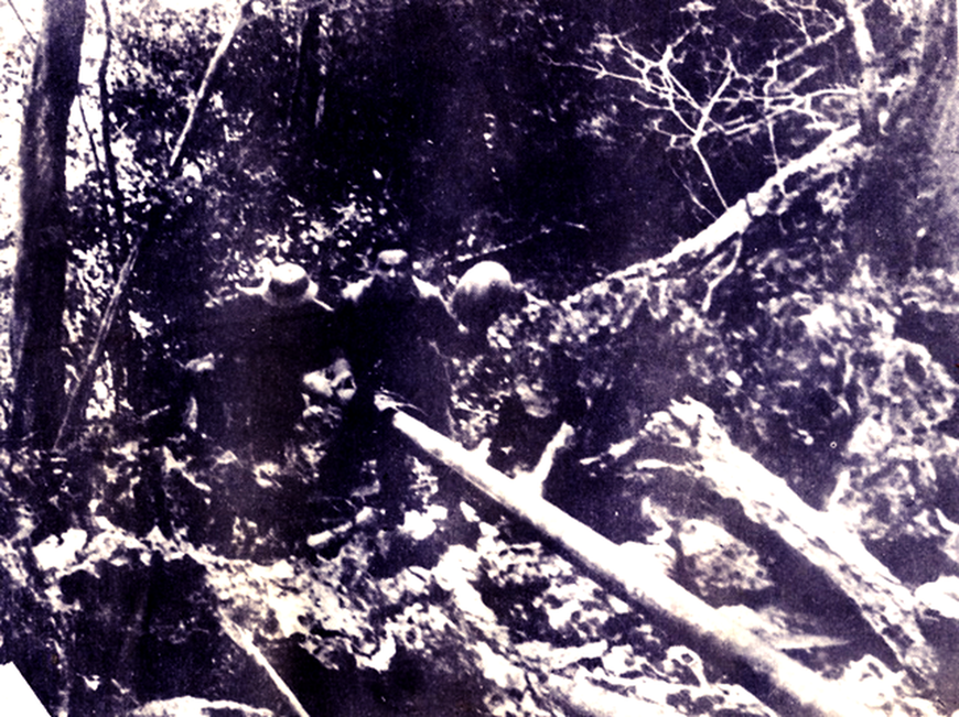 | Bộ đội đường ống xăng dầu Trường Sơn khảo sát thi công xuyên rừng. Ảnh tư liệu |