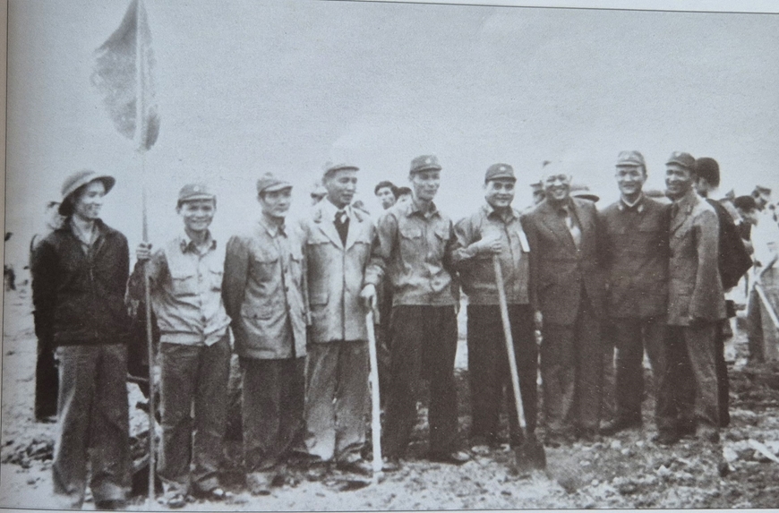 | Đồng chí Phạm Bân cùng các đồng chí lãnh đạo địa phương và cán bộ chỉ huy các đơn vị trên công trình xây dựng kinh tế - quốc phòng tỉnh Quảng Nam - Đà Nẵng. |