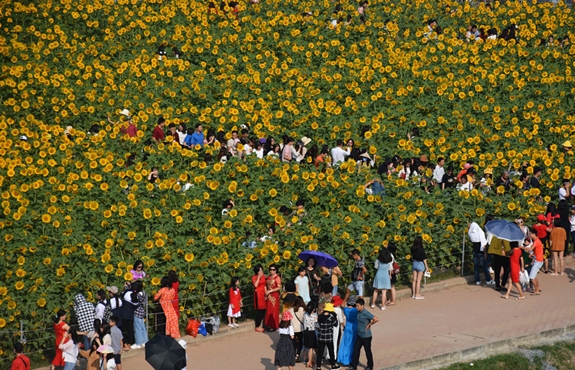 Giữa Thành phố Hải Dương, có thể dễ dàng tìm được một không gian như thế, đó là vườn hoa hướng dương đang khoe sắc vàng rực ở phía Tây thành phố. Mới mở cửa ít ngày, song vườn hoa đã trở thành điểm đến yêu thích của người dân thành phố và các vùng lân cận.