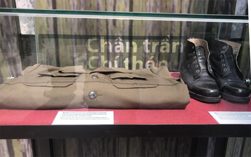 Áo vest, giày của Đại tướng Văn Tiến Dũng, Phó bí thư Quân ủy Trung ương, Tổng tham mưu trưởng Quân đội nhân dân Việt Nam sử dụng trong những năm kháng chiến chống Mỹ cứu nước. |