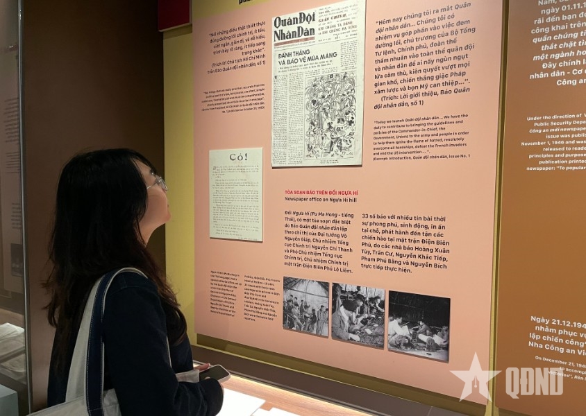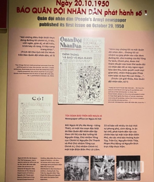 | Phần giới thiệu Báo Quân đội nhân dân xuất bản tại Mặt trận Điện Biên Phủ tại Bảo tàng Báo chí Việt Nam. Ảnh do Bảo tàng Báo chí Việt Nam Việt Nam cung cấp |