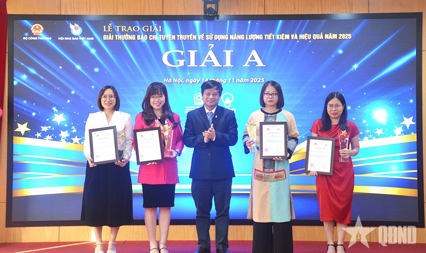 Đại diện các nhóm tác giả đoạt giải A giải thưởng báo chí tuyên truyền về sử dụng năng lượng tiết kiệm và hiệu quả năm 2025.