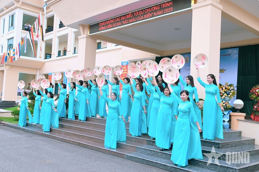 Với chủ đề “Sắc màu của biển”, chương trình thu hút 450 cán bộ, hội viên phụ nữ Vùng 1 Hải quân và các cơ quan, đơn vị trong Quân chủng Hải quân khu vực phía Bắc tham gia đồng diễn áo dài truyền thống.