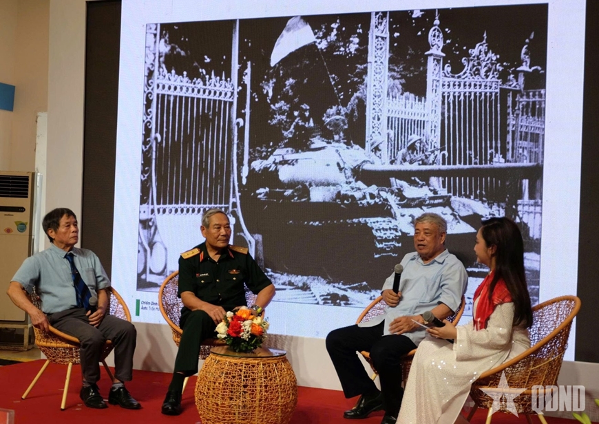 | Các nhân chứng giao lưu, chia sẻ những kỷ niệm với khán giả tại triển lãm. |