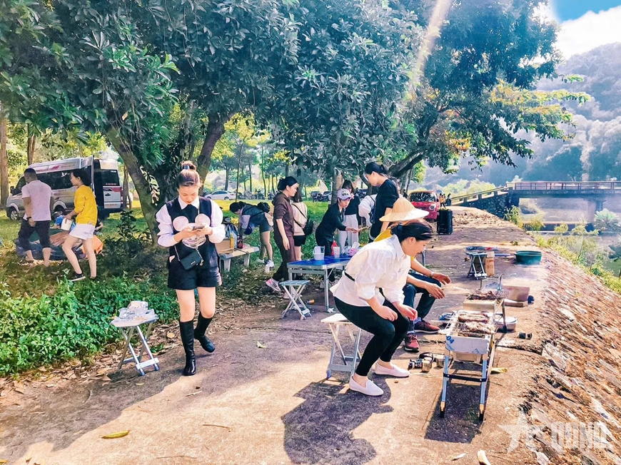 | Du khách đến với Suối Mỡ. Ảnh: HỒNG QUANG |
