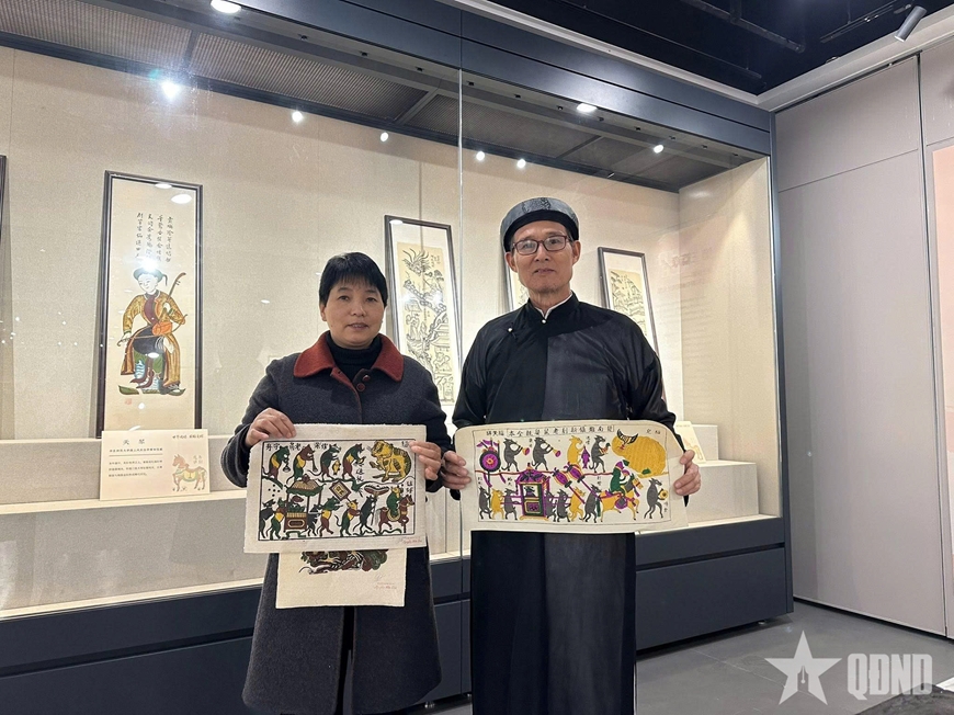 | Tranh Tết Đông Hồ Việt Nam cùng nghệ nhân Nguyễn Hữu Quả gây ấn tượng tại Thượng Hải - Trung Quốc. Ảnh: NVCC |