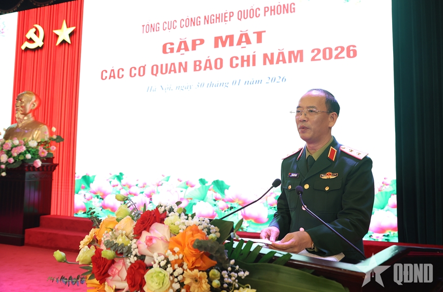 Phát biểu tại buổi gặp mặt, Trung tướng Đinh Quốc Hùng cảm ơn các cơ quan thông tấn, báo chí đã gắn bó, đồng hành, góp phần vào thành công của Tổng cục CNQP trong năm qua.