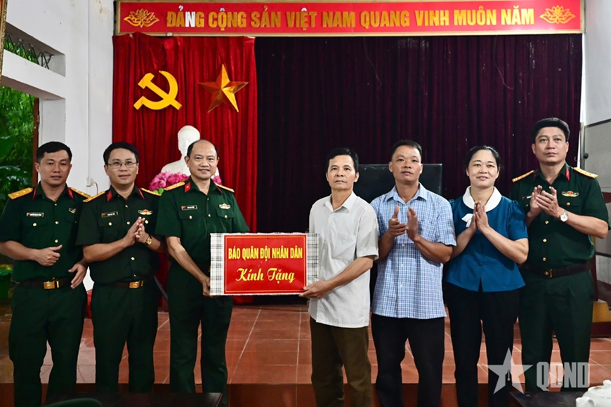 Báo Quân đội nhân dân trao quà tặng cấp ủy, chính quyền địa phương xã Bình Yên, tỉnh Thái Nguyên. |