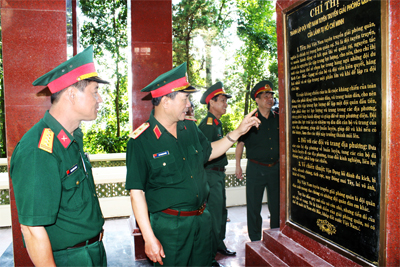 Đoàn cán bộ Tổng cục Chính trị tham quan Bia khắc ghi “Chỉ thị thành lập Đội Việt Nam Tuyên truyền giải phóng quân” của lãnh tụ Hồ Chí Minh (ảnh chụp tháng 10-2014). Ảnh: Trịnh Văn Dũng