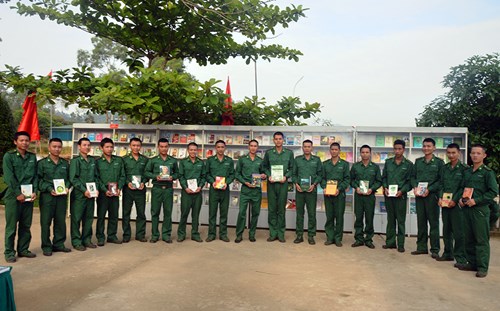 Các chiến sĩ Tiểu đoàn huấn luyện cơ động BĐBP Hà Tĩnh hăng hái tham gia Ngày hội sách. |