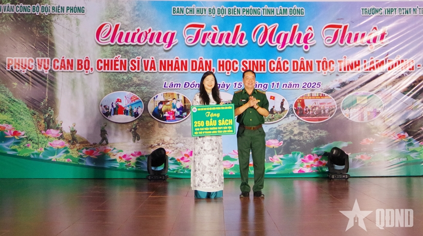 Dịp này, Ban chỉ huy Bộ đội Biên phòng tỉnh Lâm Đồng trao quà tặng Trường THPT Dân tộc nội trú N'Trang Lơng, gồm 250 đầu sách lịch sử, văn hóa, văn học, kỹ năng sống, khoa học thường thức, khoa học tự nhiên... và 10 phần quà tặng học sinh có hoàn cảnh khó khăn đạt thành tích cao trong học tập.