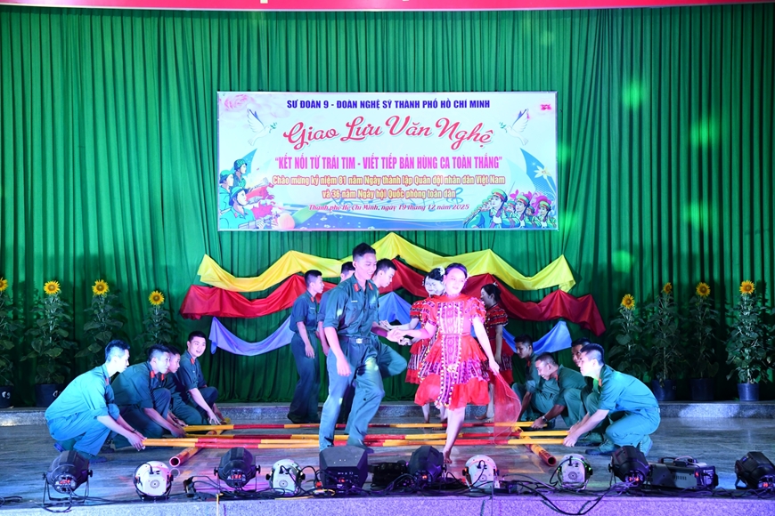 | Đêm giao lưu văn nghệ giữa tuổi trẻ Sư đoàn 9 (Quân đoàn 34) và đoàn nghệ sĩ TP Hồ Chí Minh tạo không khí phấn khởi trong toàn đơn vị. |