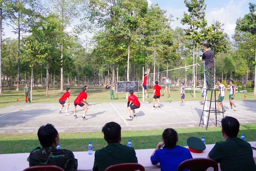 | Giao lưu bóng chuyền giữa các đại đội ở Sư đoàn 9 (Quân đoàn 34). |