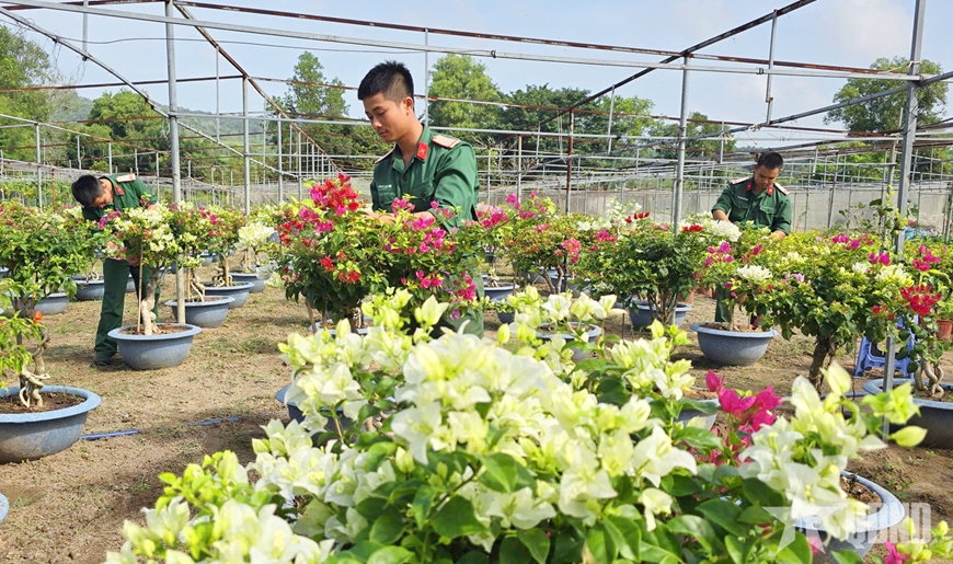 Là người tham gia trực tiếp công tác trồng hoa, Đại úy QNCN Nguyễn Trọng Kiên (Ban Hậu cần - Kỹ thuật) chia sẻ: Đơn vị vận dụng linh hoạt kinh nghiệm truyền thống trong trồng hoa Tết với tiến bộ khoa học kỹ thuật. Các khâu tỉa cành, tỉa ngọn, tạo tán cây hoa… được thực hiện tỉ mỉ, đúng kỹ thuật, giúp cây sinh trưởng cân đối, hoa nở đều, dáng đẹp. Công tác phòng, chống sâu bệnh được thực hiện chủ động, ưu tiên các biện pháp sinh học, hạn chế sử dụng thuốc bảo vệ thực vật hóa học.