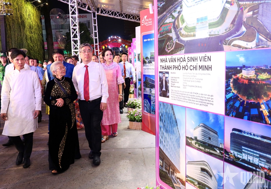 Trong khuôn khổ chương trình, đại biểu và văn nghệ sĩ tham quan triển lãm “Sắc màu thành phố - 50 năm sân khấu và văn hóa hội tụ”, trưng bày tư liệu, hình ảnh và tác phẩm tiêu biểu ghi dấu chặng đường nửa thế kỷ phát triển của sân khấu, nghệ thuật biểu diễn và đời sống văn hóa Thành phố mang tên Bác.