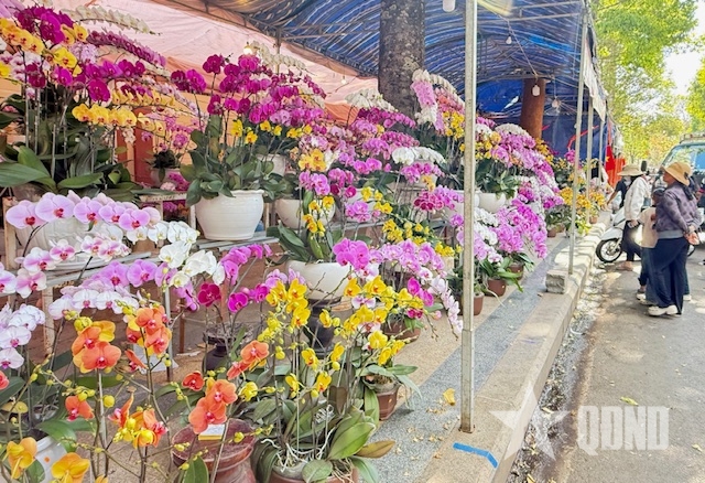 | Bà con sắm hoa chơi Tết tại Chợ hoa Xuân Buôn Ma Thuột. |