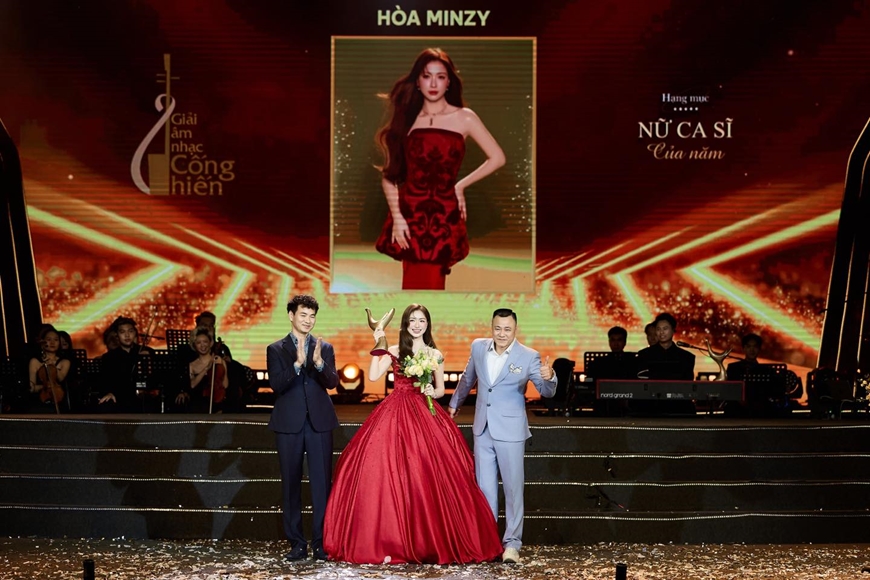 | Ca sĩ Hòa Minzy giành giải Âm nhạc Cống hiến 2025 hạng mục Nữ ca sĩ của năm. |