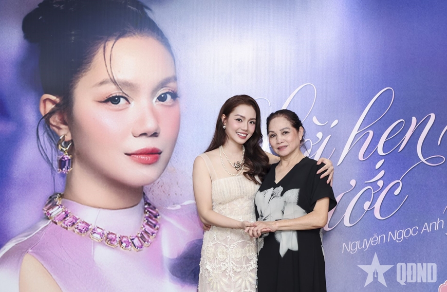 NSND Hà Thủy chúc mừng học trò Ngọc Anh ra mắt sản phẩm âm nhạc mới. |