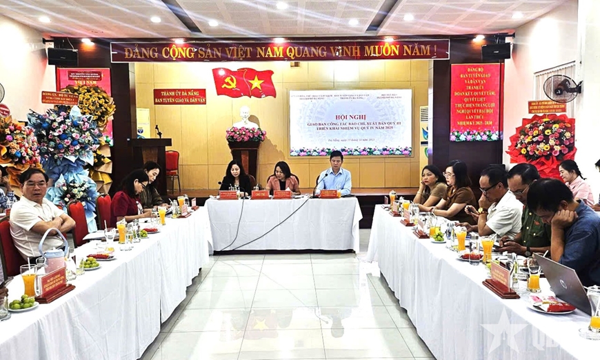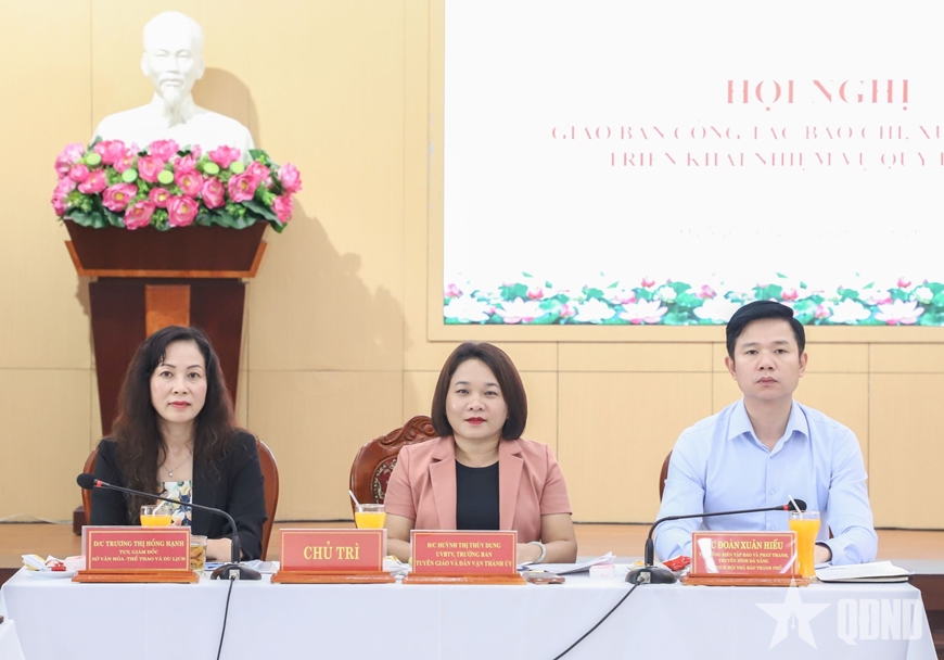 Các đồng chí: Huỳnh Thị Thùy Dung, Ủy viên Ban Thường vụ, Trưởng ban Tuyên giáo và Dân vận Thành ủy Đà Nẵng; Trương Thị Hồng Hạnh, Thành ủy viên, Giám đốc Sở Văn hóa, Thể thao và Du lịch TP Đà Nẵng; Đoàn Xuân Hiếu, Thành ủy viên, Tổng biên tập Báo và Đài phát thanh, Truyền hình TP Đà Nẵng, Chủ tịch Hội Nhà báo TP Đà Nẵng đồng chủ trì hội nghị.