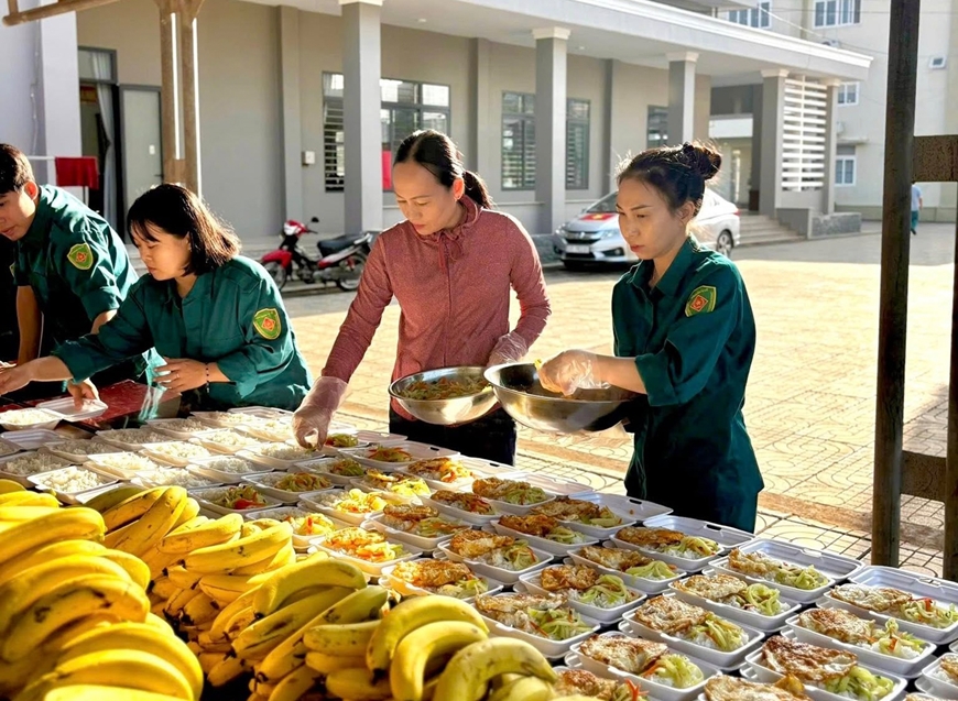 Bên cạnh đó, tổ chức bữa ăn cho bộ đội trong ngày lễ cũng là nội dung được chỉ huy các đơn vị quan tâm. Thượng tá Phạm Văn Vinh, Phó lữ đoàn trưởng, Tham mưu trưởng Lữ đoàn Pháo binh 434 (Quân đoàn 34) cho biết: Trước lễ một thời gian, Lữ đoàn đã đẩy mạnh phong trào tăng gia sản xuất, sẵn sàng nguồn thực phẩm phục vụ cho bộ đội. Từng bữa ăn ngày lễ đều được chỉ huy các cấp quan tâm sâu sát, bảo đảm đúng chế độ, tiêu chuẩn, thực đơn đa dạng, an toàn vệ sinh thực phẩm.