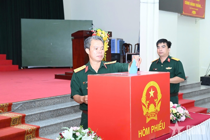 Cử tri LLVT tham gia bầu cử đại biểu Quốc hội và HĐND các cấp nhiệm kỳ 2026-2031 tại điểm bầu cử Bộ CHQS TP Cần Thơ.