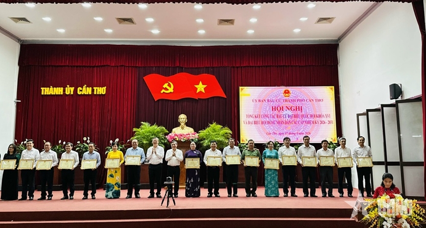 | Lãnh đạo TP Cần Thơ khen thưởng các cá nhân có thành tích xuất sắc trong công tác bầu cử. |