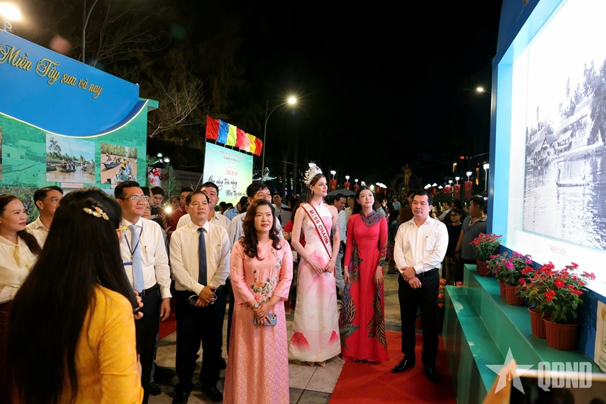 | Các đại biểu tham quan triển lãm ảnh “Nhịp sống trên sông - Miền Tây xưa và nay” khai mạc chiều 27-12. |